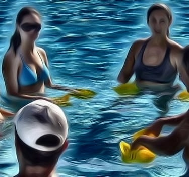 Pre-natal mom, enjoys water aerobics class with fit men & women without issue